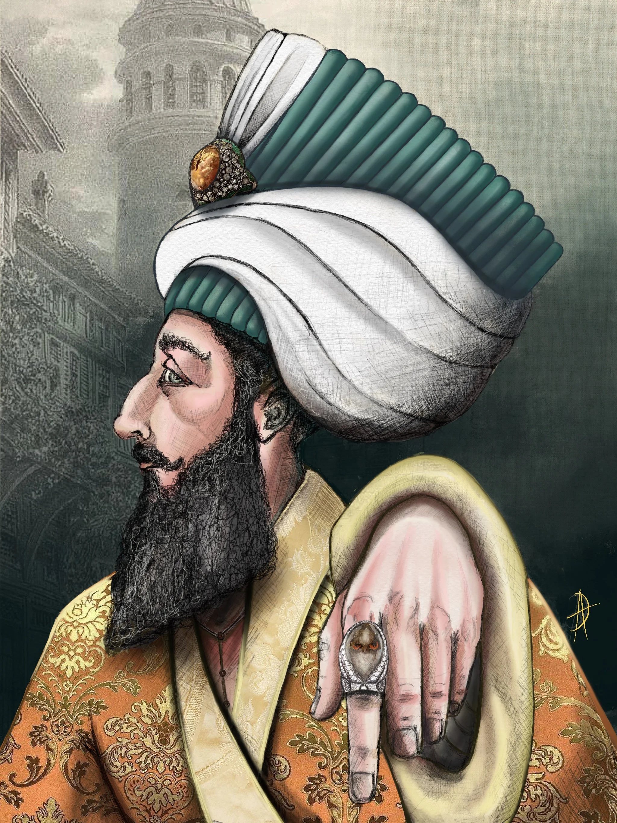 A Ukrainian slave girl who becomes queen of an empire. A Pasha’s blue-eyed son who becomes a spy in the German army. A harem eunuch who conspires in the death of a prince. A shipwrecked Venetian sailor who’d gladly die in the arms of his captor. These are a few of the (mostly) fictional individuals whose portraits and fascinating stories self-taught Turkish artist Alper Demirci masterfully presents. In-depth knowledge of his homeland’s history—from the 14th-century origins of the Ottoman Empire to the 20th-century birth of the Turkish Republic—adds authenticity that breathes life into this cast of intriguing characters.