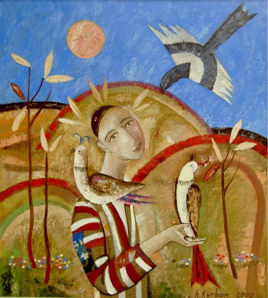 A magpie brings good news from distant lands to a young boy who loves his birds. These birds were inspired by the wall paintings in the ancient Bezeklik Thousand Buddha Caves (Myn-Oy in Uighur) near Turfan, a Silk Road oasis city.