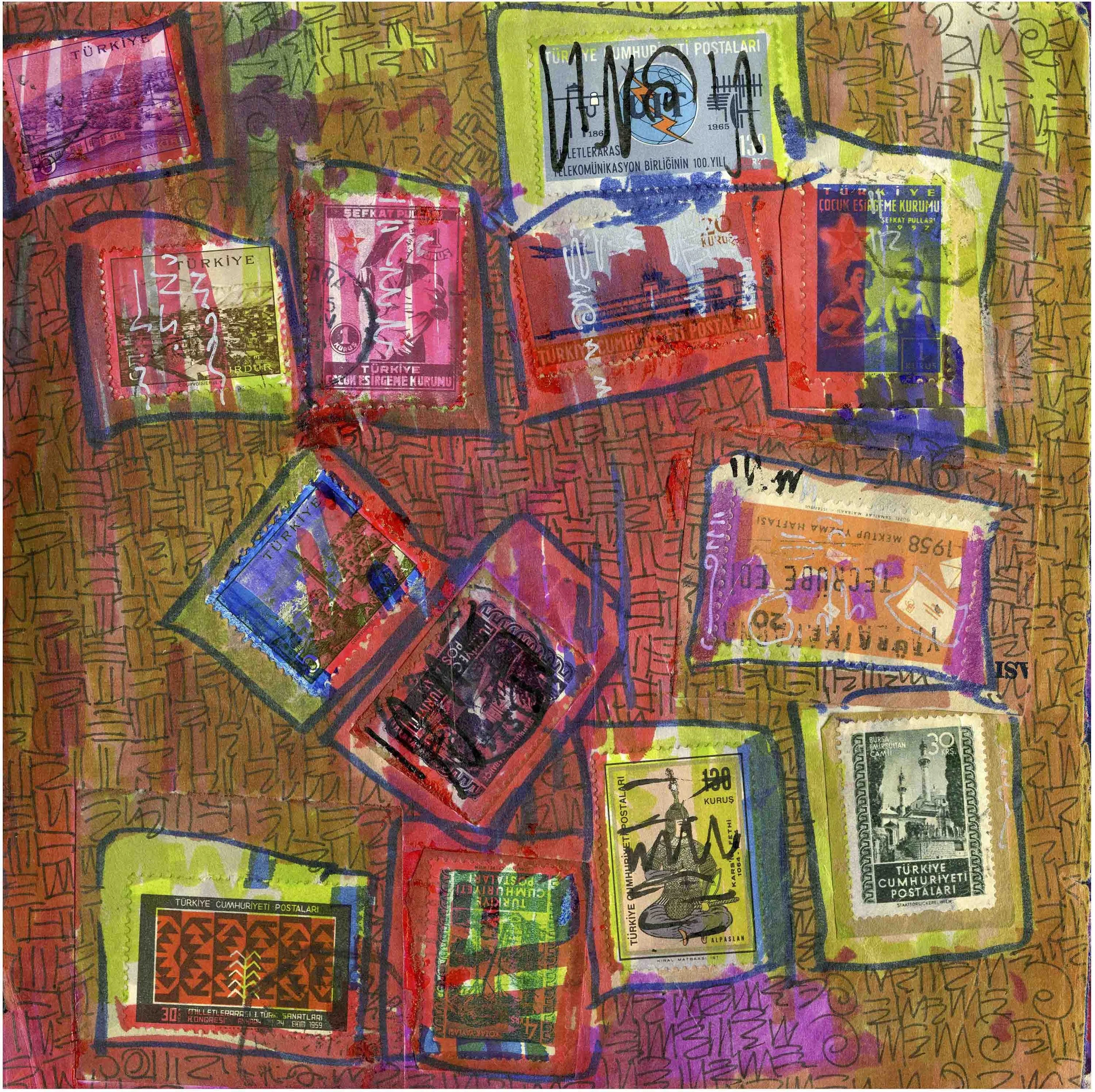 Stamps are the lyric storytellers. They were available, ready-made materials that I could put together.