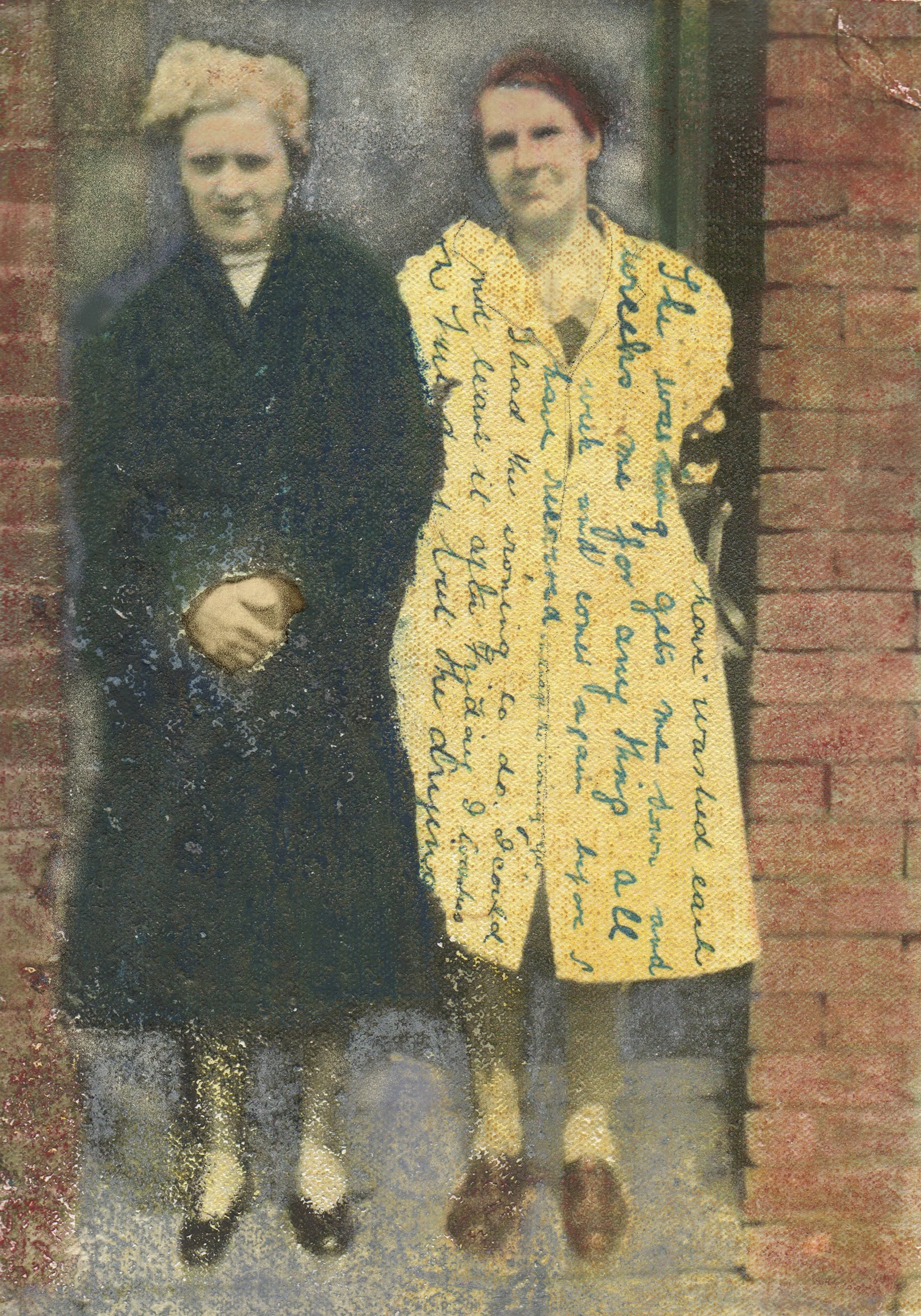 In this digital collage, I’ve given voice to Ada’s poignant words in creating the fabric of the overall that one of the women is wearing.